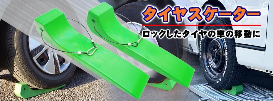 タイヤスケーター ライムグリーン 2本セット タイヤスケート カラビナワイヤーロープ付き 積載車 セルフローダー レッカー車向け レッカー用品 ロードサービス用品 ドーリーサポート 送料無料