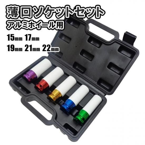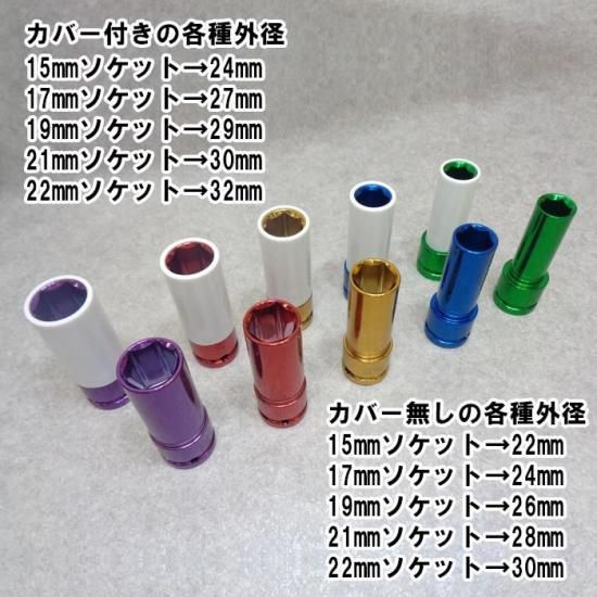 【インパクトレンチ用 ホイールソケット 15mm 17mm 19mm 21mm 22mm ホイールナット ソケットレンチ エアーインパクトレンチ ソケット 薄型 ソケットセット アルミホイール ケース 車載工具 アルマイト仕上げ タイヤ交換 ホイール キズ防止 薄口 カラー カラフル アルミホイールソケット アルミホイール用 ソケット インパクト用 車 自動車 工具】