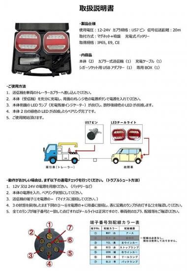 【LED 充電式 ワイヤレス テールライト ワイヤレステールランプ 12V 24V US7ピン セット マグネット式 無線 牽引 故障車 搬送 運搬 装置 トレーラー トラクター 簡単 脱着 緊急時 工具 防水 レッカー用品 磁石 磁気 7pin ウインカー ブレーキ ライト ランプ ボート トラック ヒッチメンバー 故障車 アウトドア 牽引トレーラー 大型車 積載車 キャンピングトレーラー ボートトレーラー 牽引ロープ 牽引フック ワンタッチ】