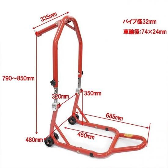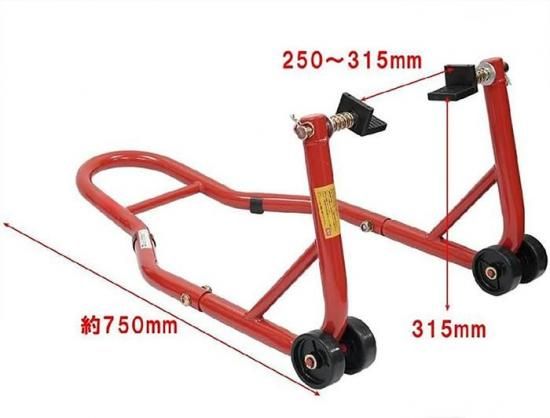 モーターサイクル フロントスタンド リアスタンド 2台 セット 高さ 5段階 調整式 レッド 耐荷重 320kg ステアリングステム 7サイズ アタッチメント L型 傷防止 保護パッド付 タイヤ交換