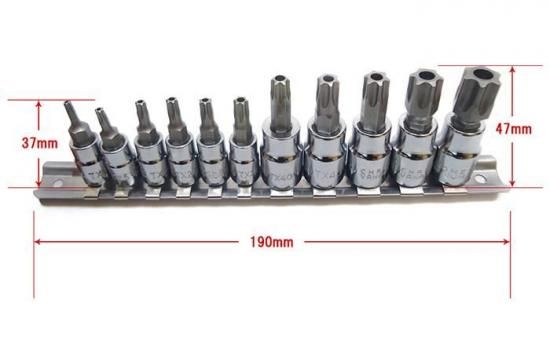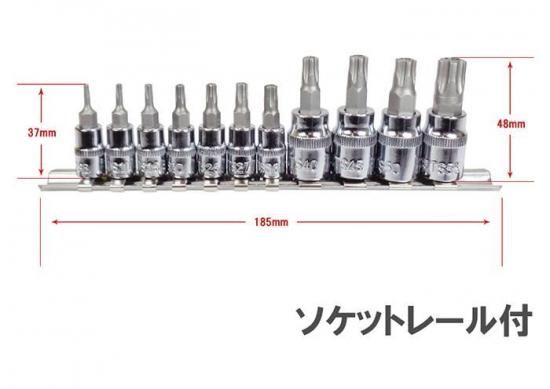 【5角いじり止め付きトルクスビットソケット:11サイズ】【6角いじり止め付きトルクスビットソケット:11サイズ】【E型トルクスソケット:10サイズ】の3組セット。