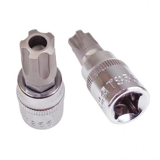 通常のトルクスドライバーやマイナスドライバーでは差し込めない形状のネジを取り外す雄(オス)の穴付きトルクスビットソケットです。